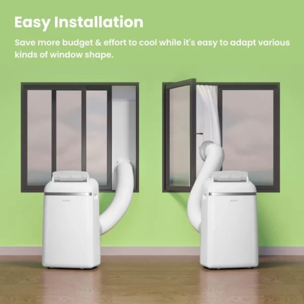Un kit d’évacution est fourni gratuitement, dont les accessoires comprennent un tuyau d’échappement, des joints de mousses, adapteur de glissières etc, qui va bien avec les fenêtre coulissantes. Attention, en mode de déshumidification, il faut monter un tuyau d’évacution, qui n’est pas inclus dans le kit